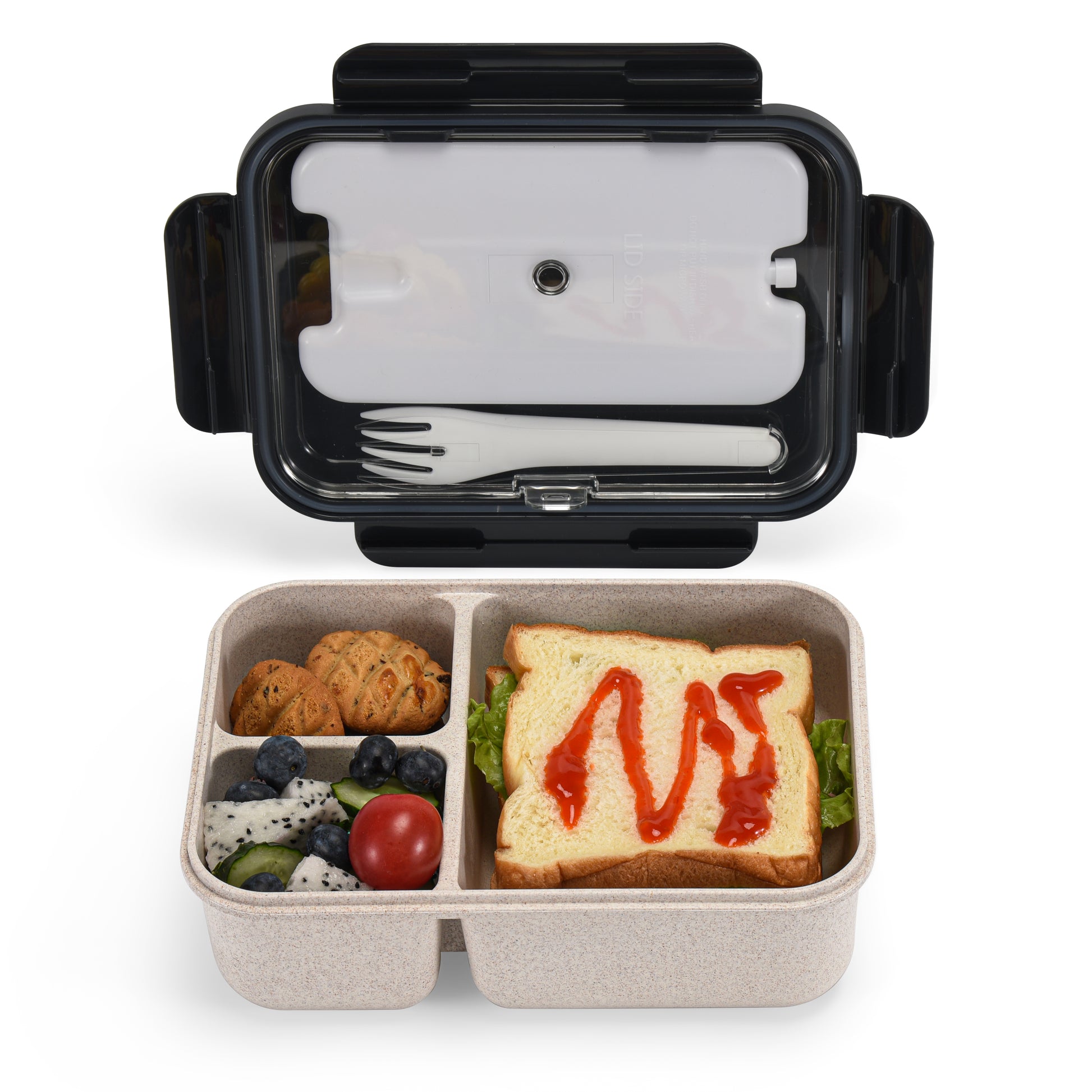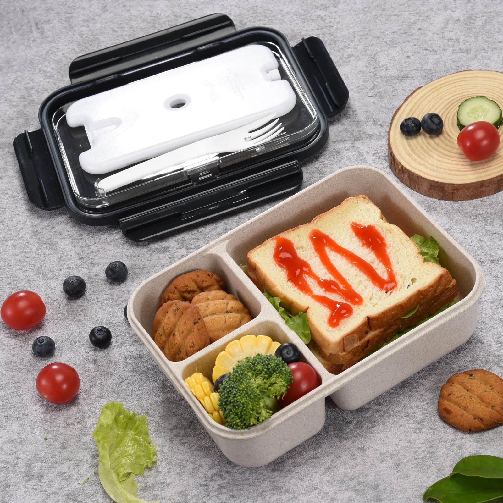 Husk Fiber 3 Compartment Bento Box With Cutlery & Ice Pack - Black & Grey